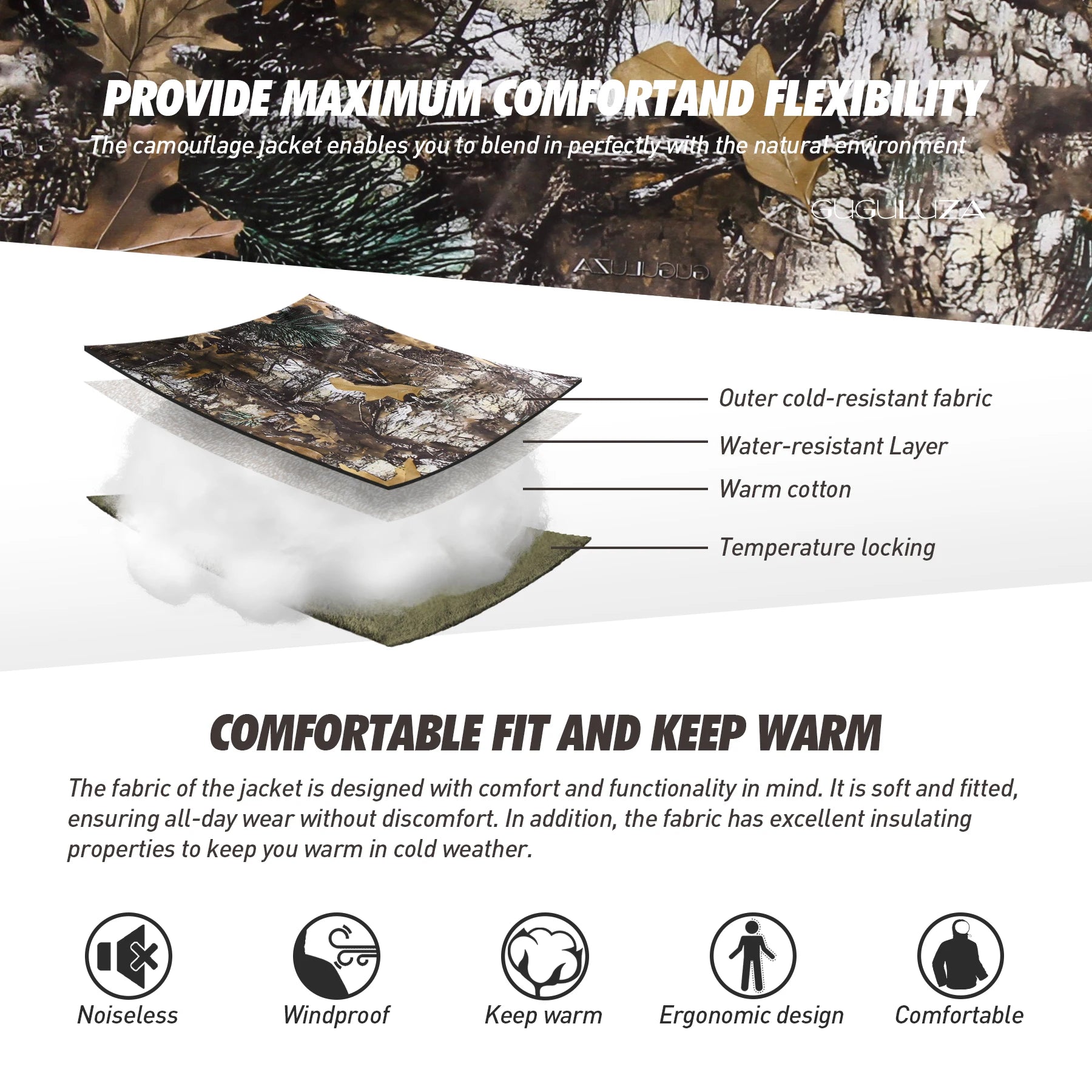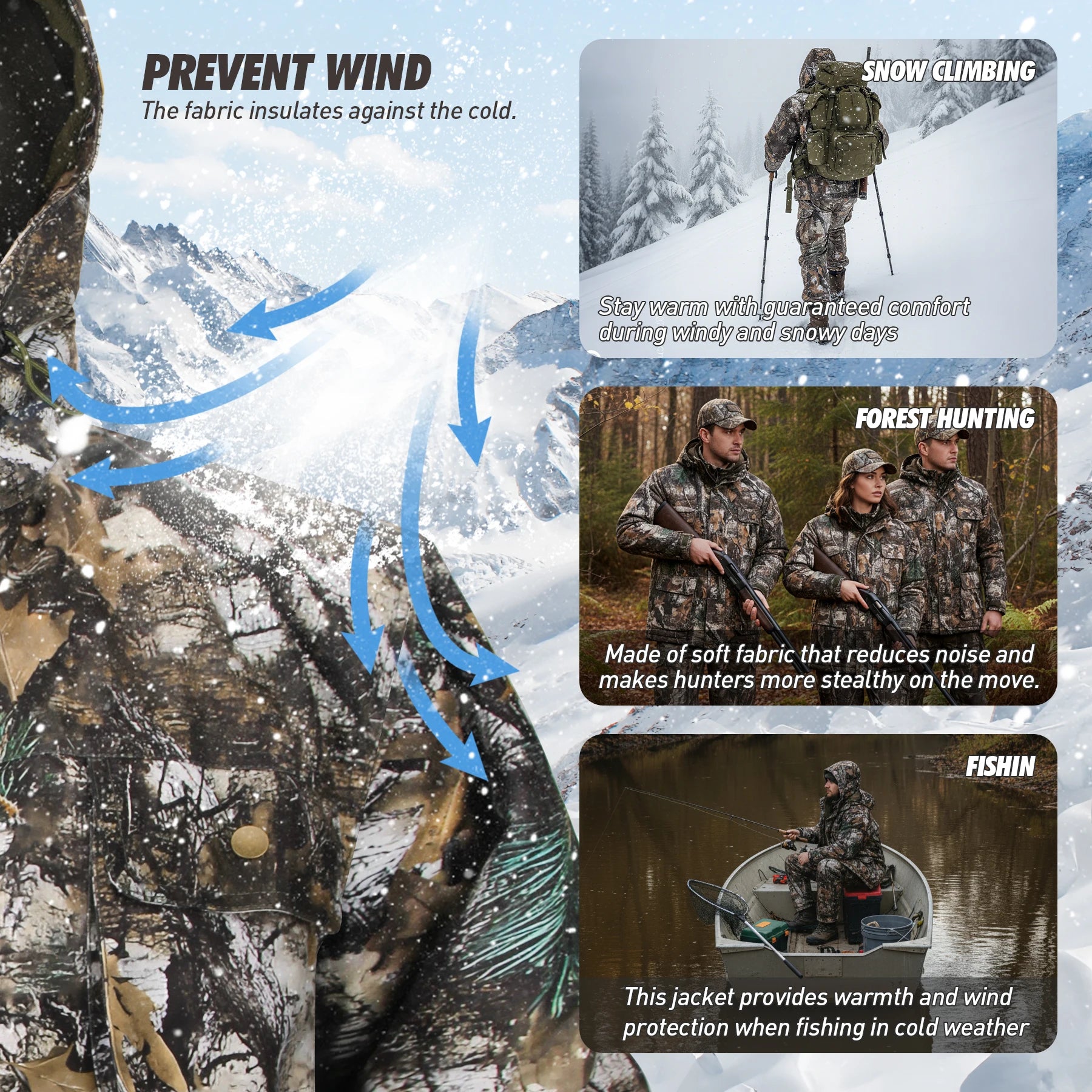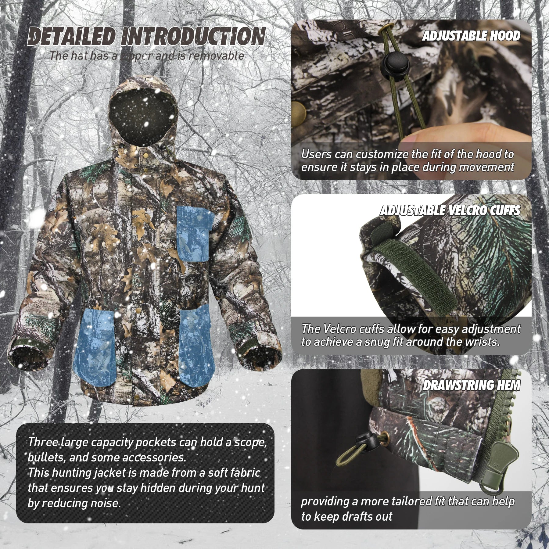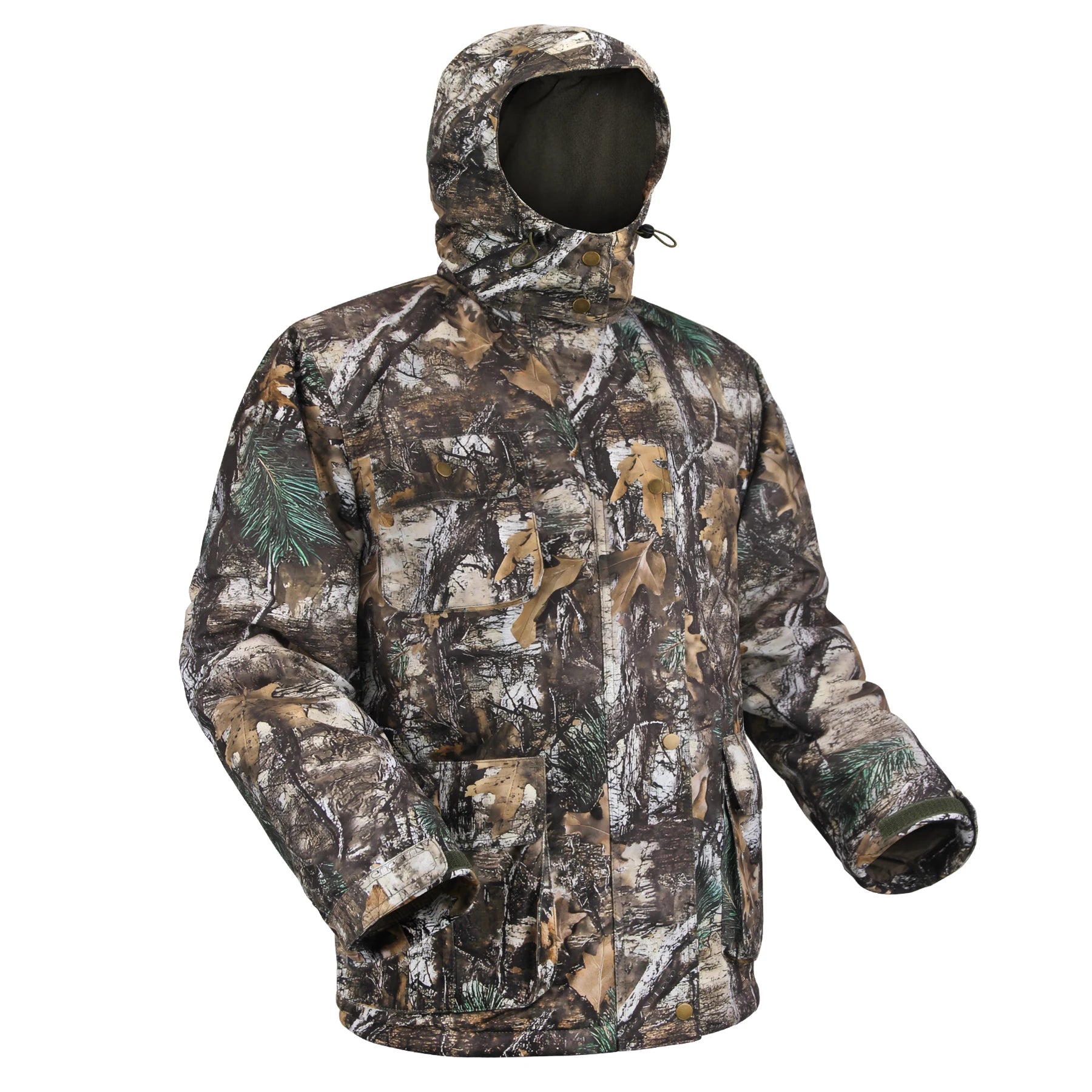 Hunting Jacket with Fleece Lining Tactical Waterproof Hooded Coat Outdoor Silent Deer Hunting Parka Upland Camo Hunting Jackets